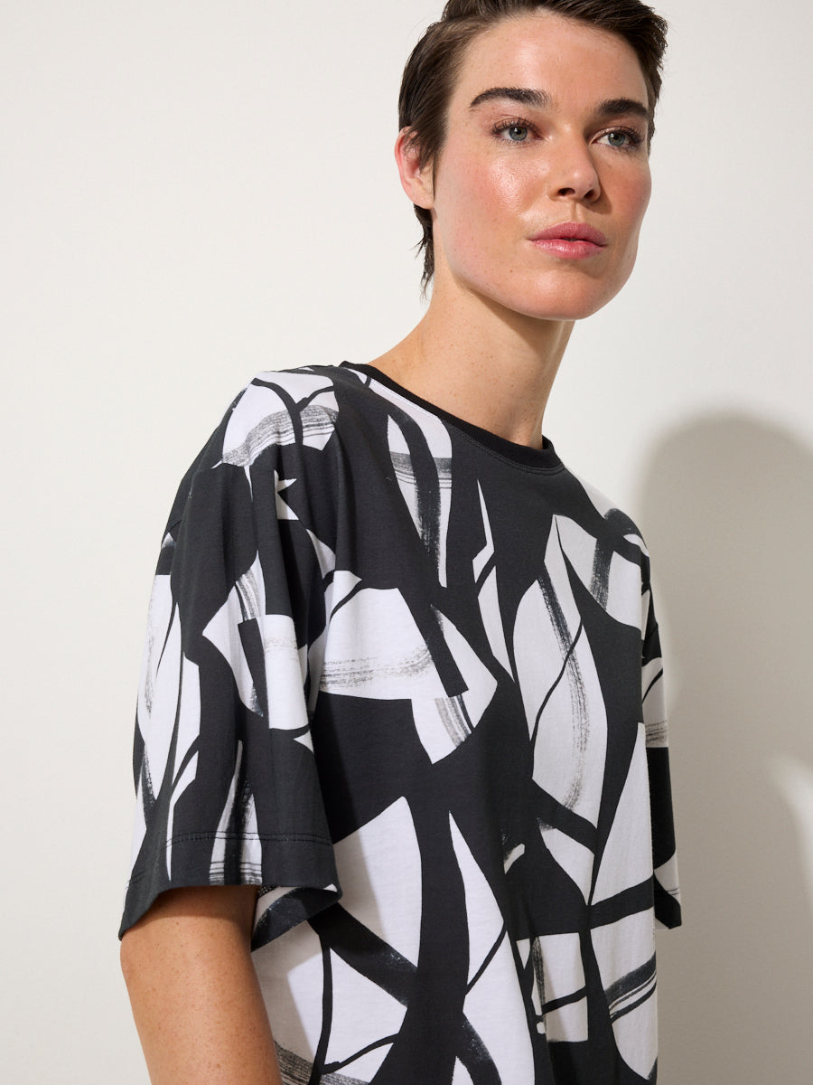 The Eclipse Tee takes a classic silhouette and gives it a modern update. Crafted from 100% cotton for softness and breathability, it features an exclusive black-and-white geometric print that adds instant edge to a simple round-neck style. Short sleeves and a regular fit keep it easy to wear, while the graphic design makes it a standout piece in any capsule. A versatile tee that layers seamlessly under jackets or stands out on its own, it’s the easiest way to add character to your everyday wardrobe.