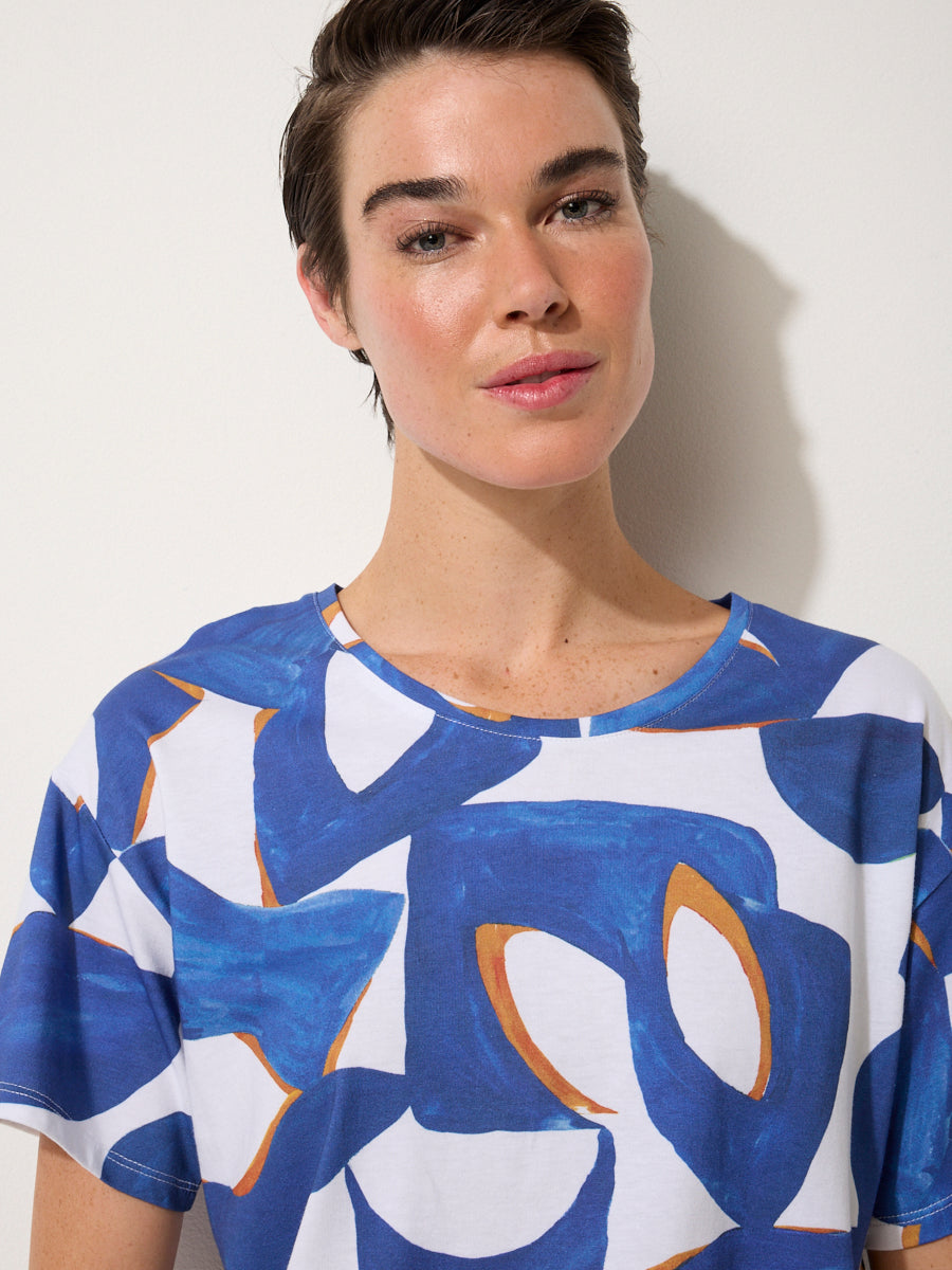 The Short Sleeve Reflections Tee combines the comfort of a classic fit with the bold personality of a signature Marco Polo print. Crafted from 100% cotton, it features an exclusive blue and white geometric design with painterly edges and a subtle pop of orange for a fresh, contemporary feel. The round neckband and regular fit keep it effortless and wearable, while the print adds just the right amount of statement to elevate everyday dressing. A simple way to bring colour and individuality into your wardrobe without compromising on comfort.